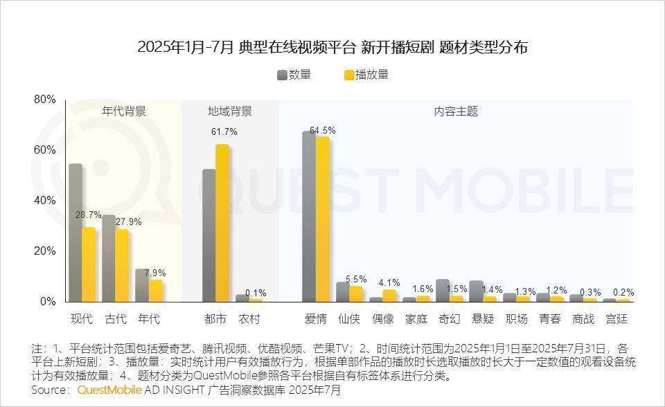 另一方面,内容创新化,核心表现是“长剧向短”,21至40集为核心,在爱情、罪案、职场类仍为主流的前提下(播放量占比分别为49.2%、19.9%、11.5%),以更密集的信息量、更高效的呈现方式,如多题材融合(爱情融合仙侠、悬疑、权谋等剧情)、多元素融合(喜剧、职场、CP等),进而提高平台的核心用户群体黏性,例如爱奇艺的恋恋剧场女性用户占比51.3%、90后及00后用户的占比43.1%。